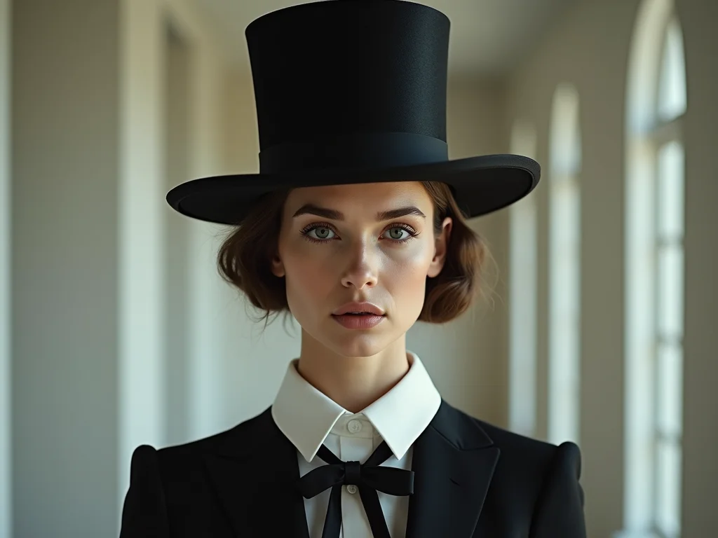 Para o uso diário, sugiro optar por um top hat de lã ou feltro, com um design mais minimalista, talvez com um laço discreto. Combine com peças de alfaiataria moderna, como blazers oversized, calças de corte reto ou até mesmo um vestido mais casual. O objetivo é que ele complemente seu estilo, sem sobrecarregar.