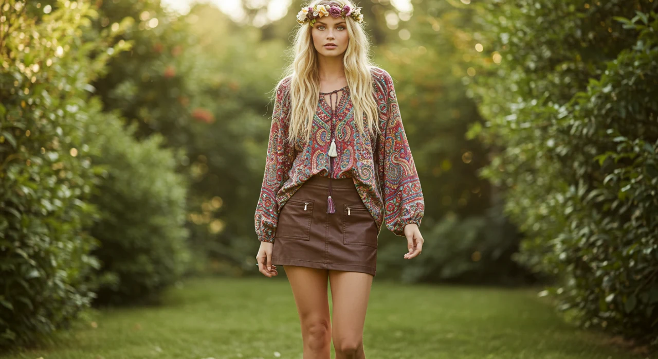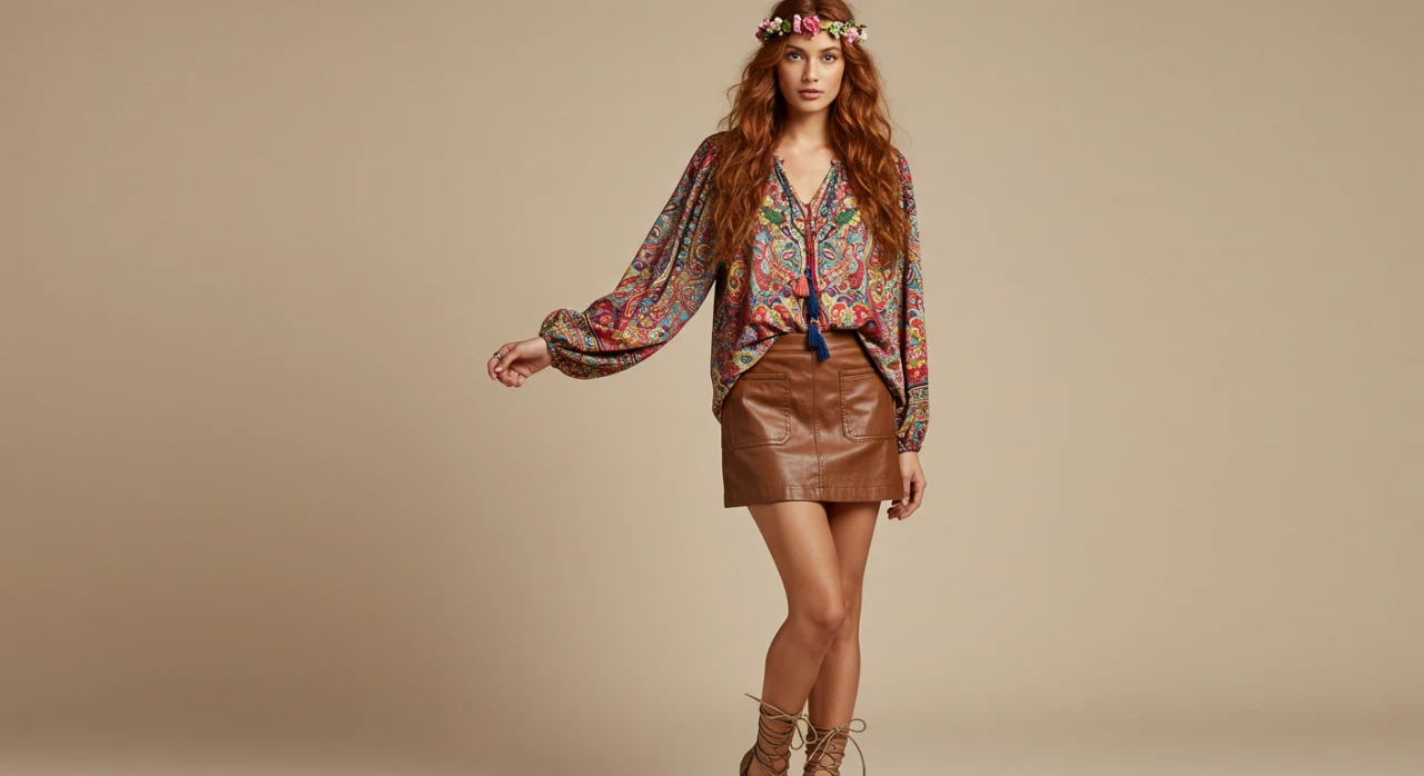 Se você adora o estilo boho chic, combine sua saia de couro com uma blusa ciganinha e uma sandália rasteirinha. Esse look é leve, confortável e perfeito para os dias de calor.