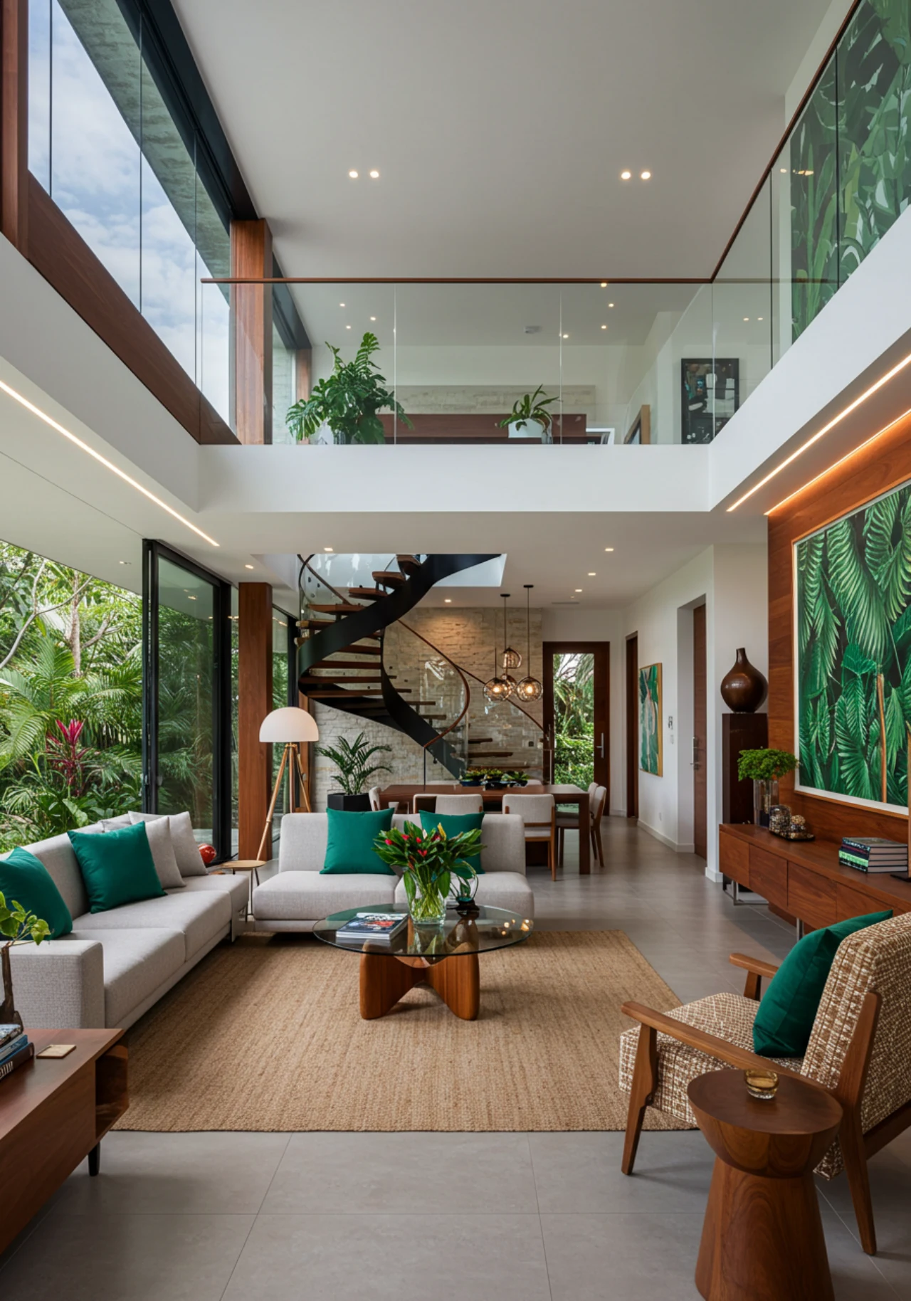 E aí, gostou das dicas? Espero que sim! Agora você já sabe como transformar sua sala com pé direito duplo em um espaço incrível e cheio de personalidade. Se tiver alguma dúvida, deixe um comentário aqui embaixo. E não se esqueça de compartilhar este post com suas amigas que também sonham com uma sala de estar perfeita. Até a próxima!