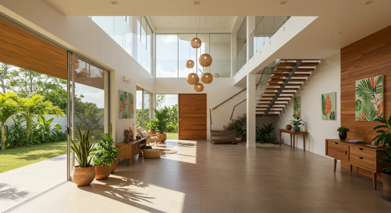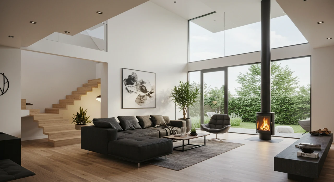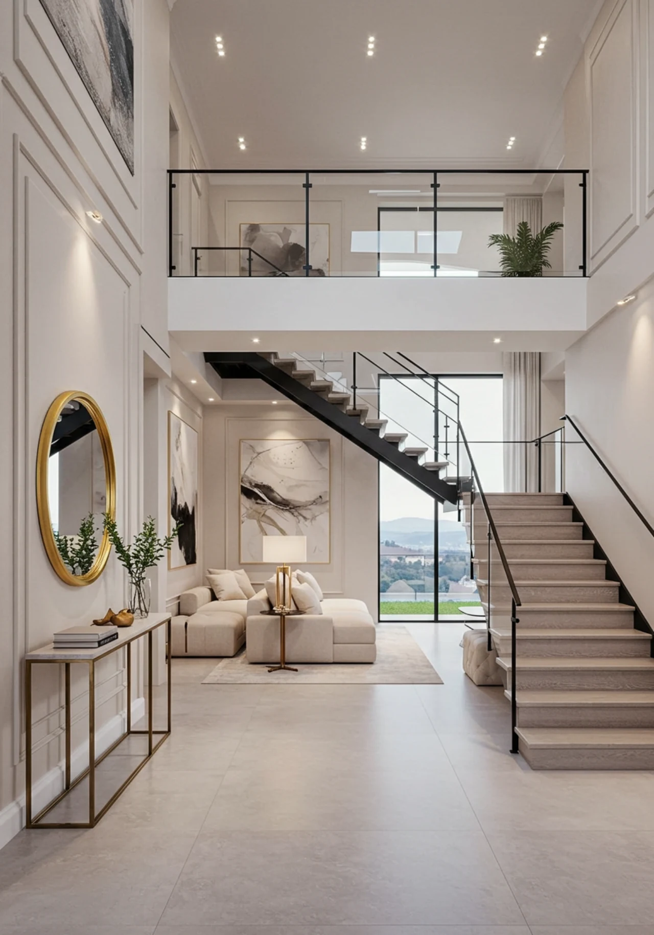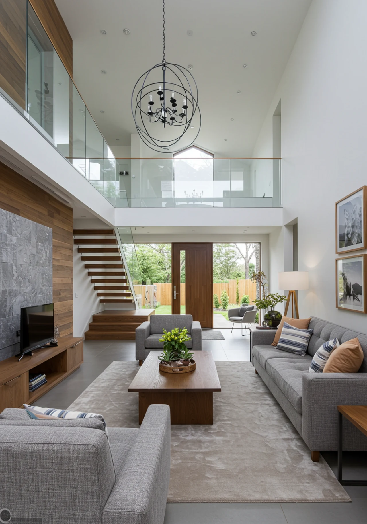 Geralmente, a altura ideal para o pé direito duplo varia entre 5 e 6 metros, proporcionando uma sensação de amplitude e conforto visual.