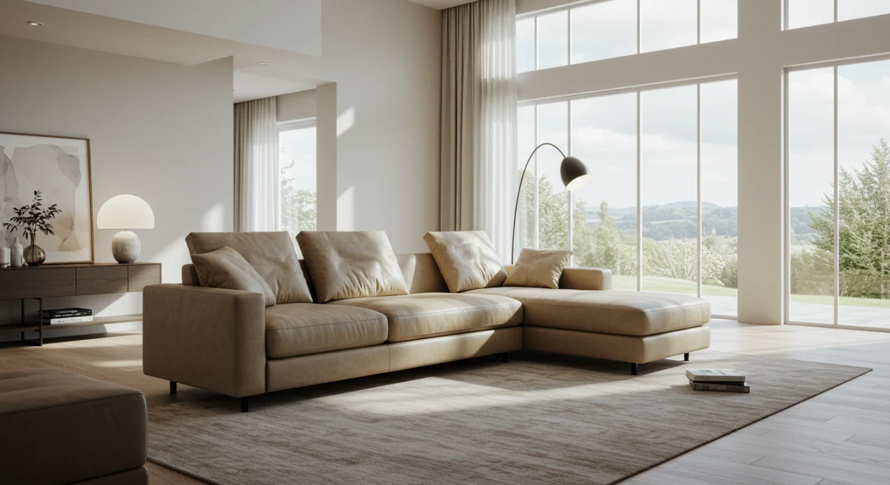 Sofá | Retrátil com chaise para espaços pequenos. | Modular para espaços grandes, tecido resistente e fácil de limpar. |