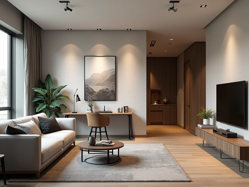 Layout Inteligente para Sala de Estar com Home Office Compacto