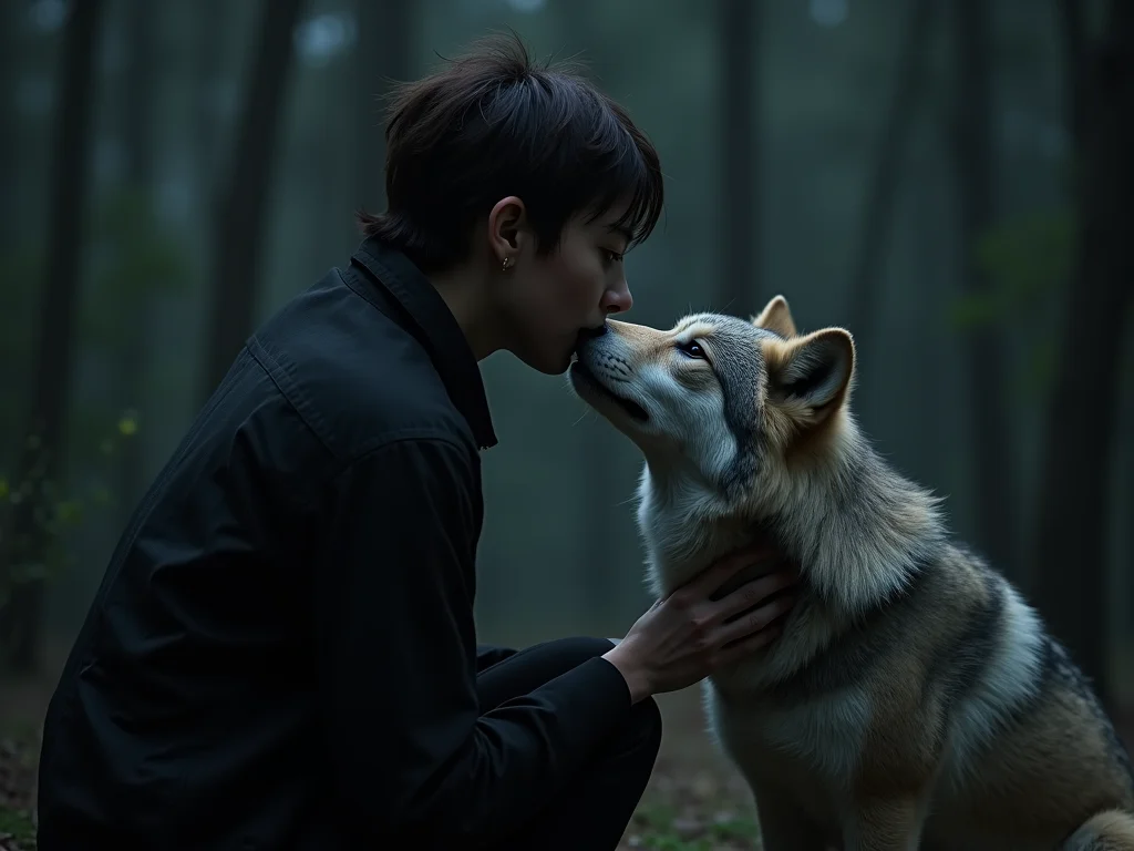 Corte wolf cut em variação masculina, com topo mais longo e laterais levemente mais curtas, estilo despojado.